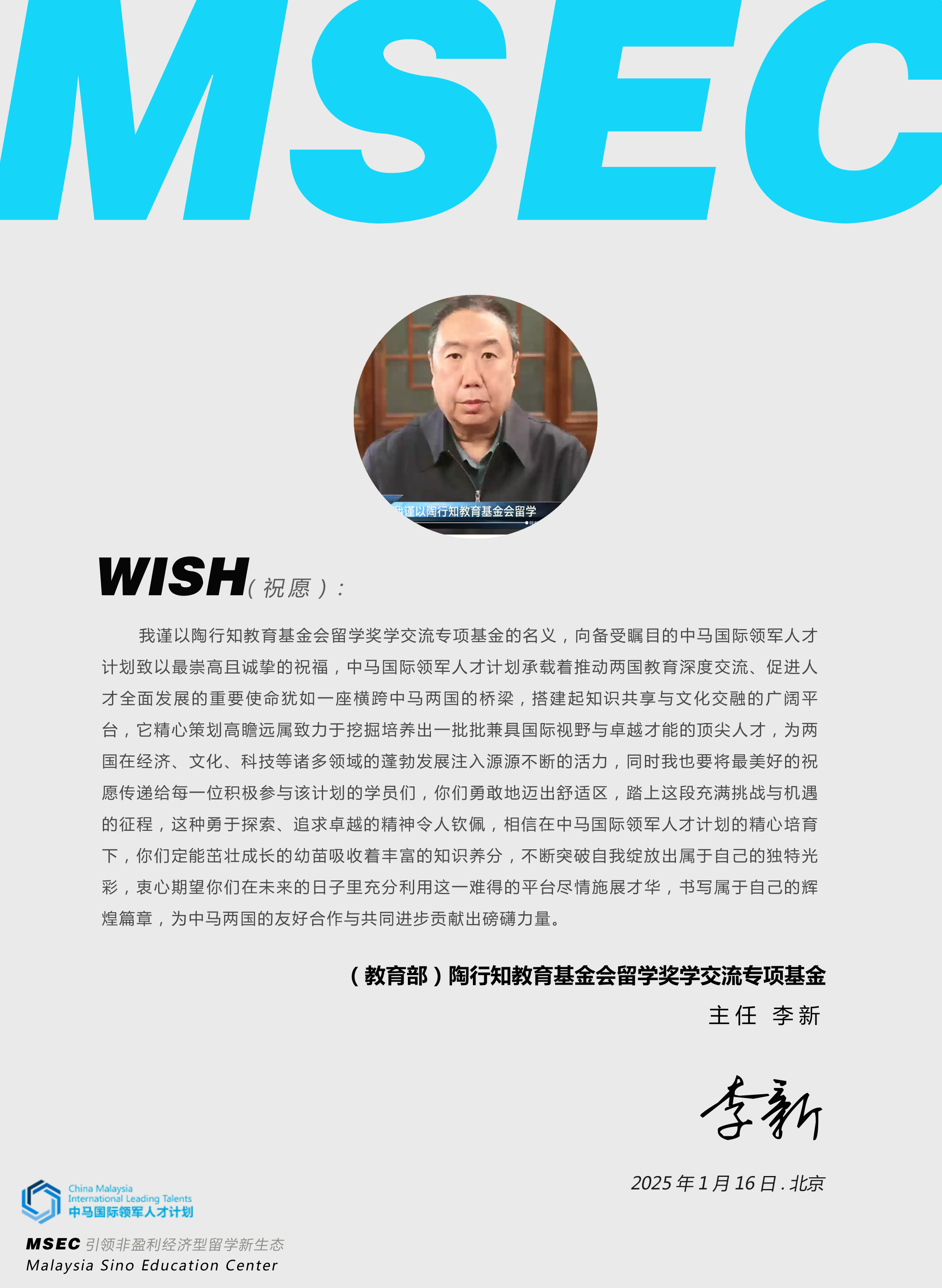 (教育部)陶行知教育基金会留学奖学交流专项基金李新主任祝福MSEC即将留学的小伙伴们