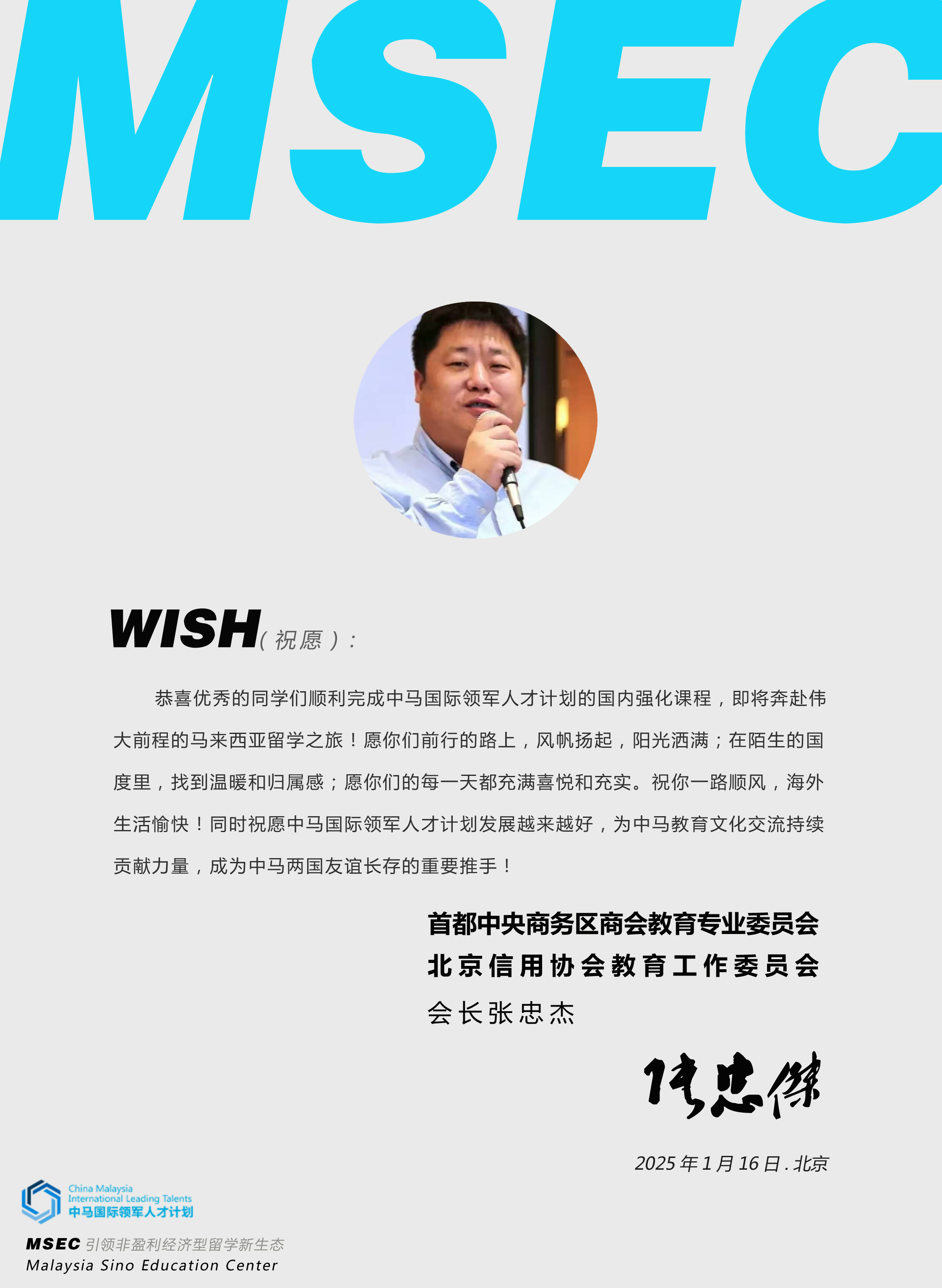首都中央商务区商会教育专委会会长张忠杰祝福MSEC小伙伴们留学前程似锦